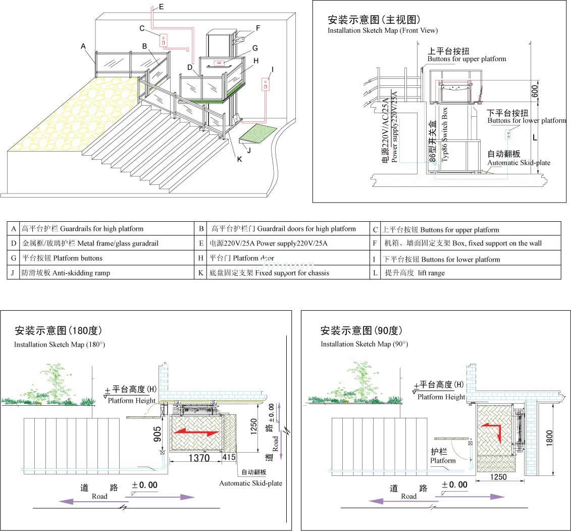 為了解決大量老式高層小區和公共場所的無障礙設施改造,我公司經過大量的市場調查,結合原來產品研制開發了VL型無障礙升降平臺。VL型無障礙升降平臺采用大截面鋁型材垂直導向系統,液壓或螺桿驅動,升降平穩安全,外部采用鋁板靜電噴塑機箱和面板、外型高檔。直接安裝于地面,無需土建配套地坑,施工簡便,產品放置戶外不易積水,不易生銹,維護簡便。螺桿式驅動能適應零下40度的低溫,適用于我國北方地區。